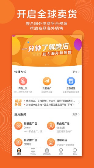 跨店是免費(fèi)幫你把商品賣遍全球的APP,為傳統(tǒng)商家提供新銷售渠道,專業(yè)運(yùn)營團(tuán)隊(duì)助力做跨境電商,一站式倉儲(chǔ)物流等服務(wù)以及自主研發(fā)智能技術(shù)協(xié)助商品推廣運(yùn)營。