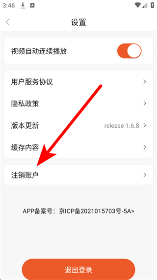 3、在設(shè)置界面里,點擊注銷賬戶選項,進入注銷賬號頁面。
