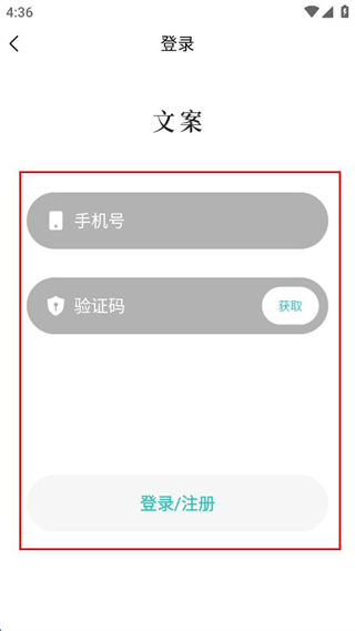 4、進(jìn)入手機(jī)號登錄界面,可看到輸入手機(jī)號、驗(yàn)證碼及登錄/注冊按鈕。