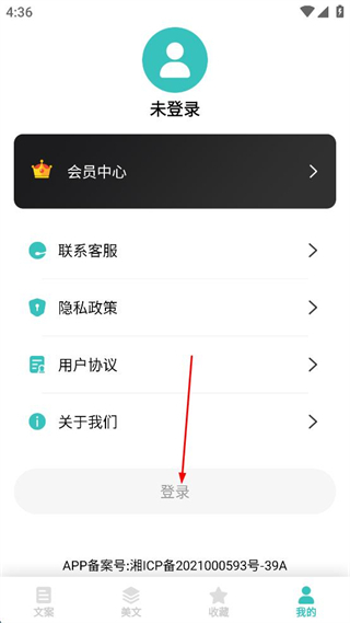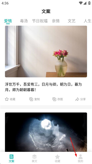 1、在文案類軟件界面,點(diǎn)擊我的按鈕。
