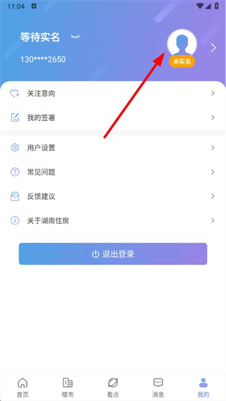 1、在湖南住房app首頁(yè)點(diǎn)擊我的選項(xiàng),進(jìn)入個(gè)人頁(yè)面。