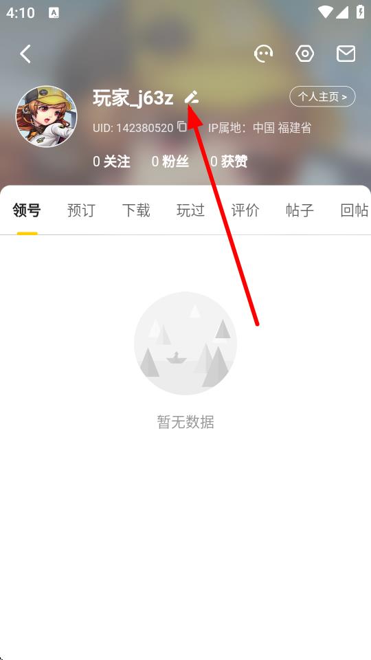 3、在個(gè)人頁面中,點(diǎn)擊昵稱旁的編輯圖標(biāo),進(jìn)入編輯個(gè)人信息界面。