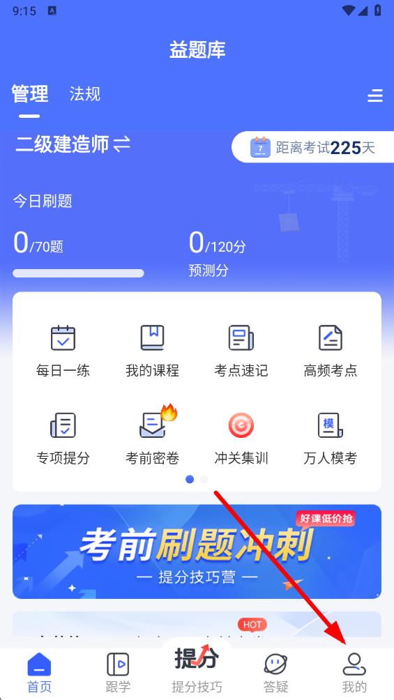1、打開益題庫app,點擊底部導航欄最右側(cè)的我的圖標,進入相關(guān)界面。
