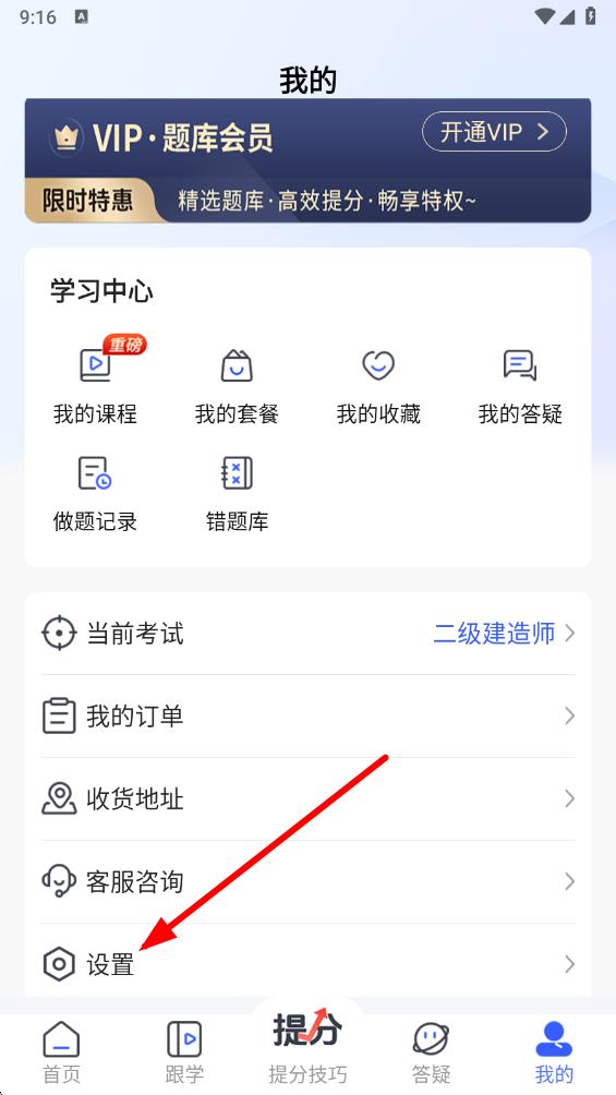 2、在我的界面中,向下滑動找到設(shè)置選項并點擊,進入設(shè)置頁面。
