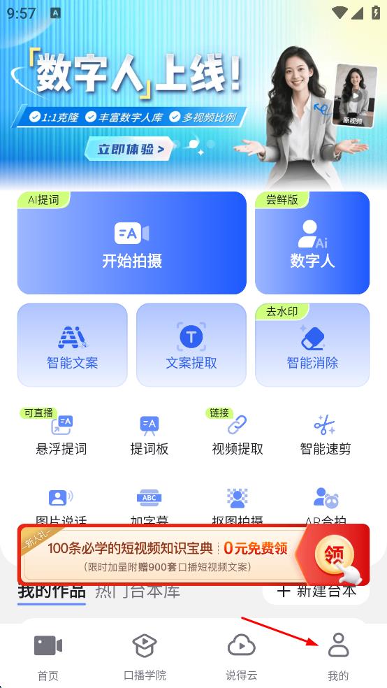 1、打開口播類APP,進入首頁后,點擊頁面右下角“我的”選項,進入個人中心頁面。