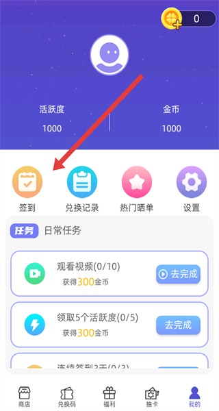 3、個人中心頁面點擊“簽到”,進(jìn)入簽到領(lǐng)福利頁面。