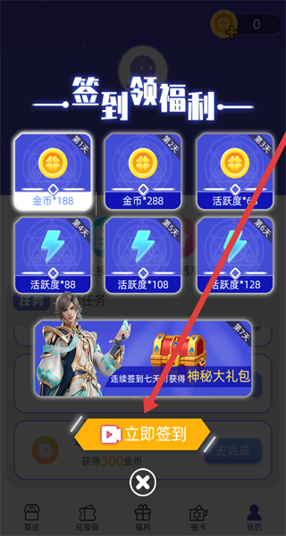 4、在簽到領(lǐng)福利頁面點擊“立即簽到”,完成簽到操作。