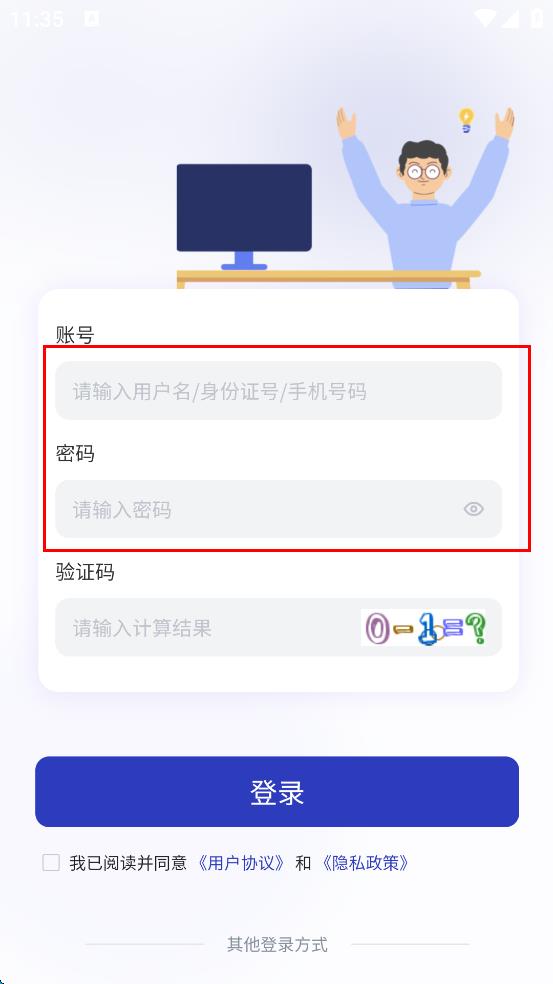 2、在登錄頁面的賬號輸入框中,輸入用戶名、身份證號或手機(jī)號碼。