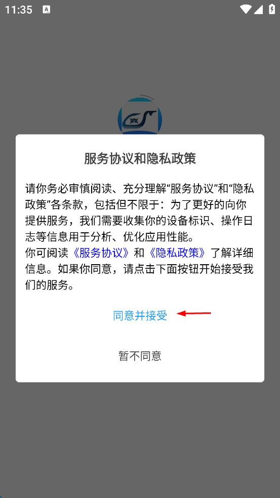 1、打開該政務(wù)類APP,會出現(xiàn)服務(wù)協(xié)議和隱私政策界面,仔細(xì)閱讀后點(diǎn)擊“同意并接受”,進(jìn)入登錄頁面。