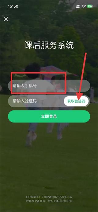 3、在課后服務(wù)系統(tǒng)登錄頁(yè)面,填寫(xiě)手機(jī)號(hào)碼并獲取驗(yàn)證碼。