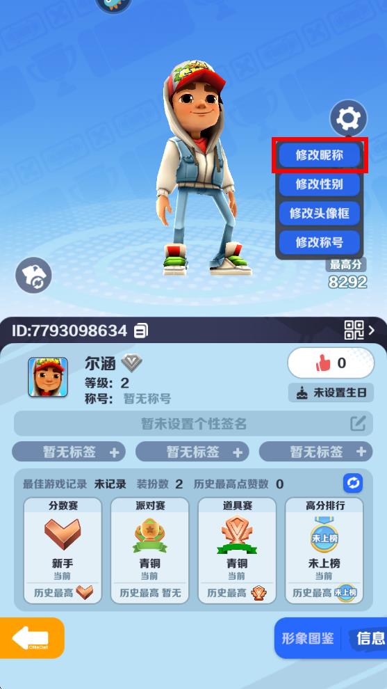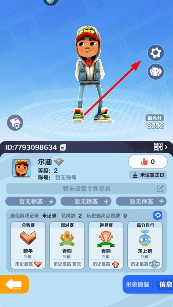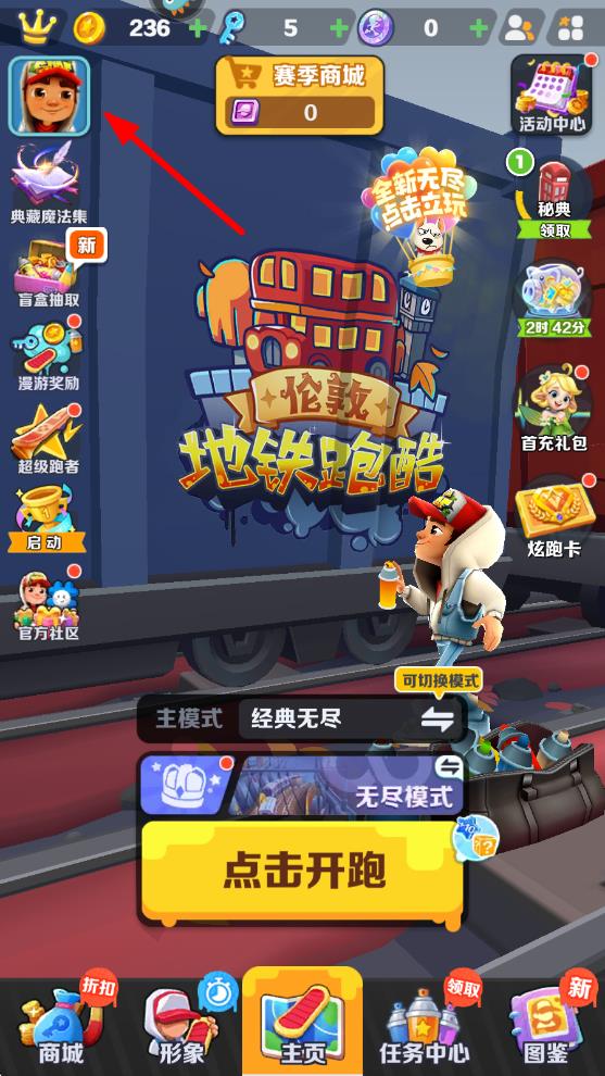 1、進入地鐵跑酷主界面后,點擊左上角的個人頭像,進入個人信息頁面。