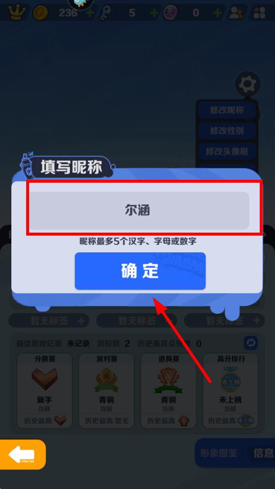4、在修改頁面輸入需要修改的新昵稱后點擊確定即可完成修改。