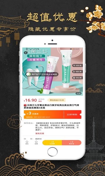 2、一鍵在線領(lǐng)取各大商品的優(yōu)惠活動(dòng),也能在平臺(tái)里面來搜索現(xiàn)在市場上熱門的商品;