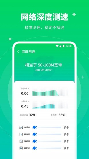 網(wǎng)速測速功能,可以測出您的網(wǎng)絡(luò)速度水平;