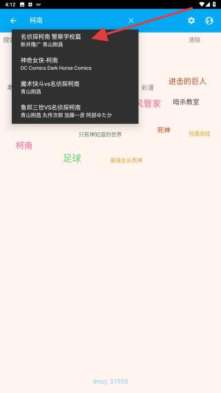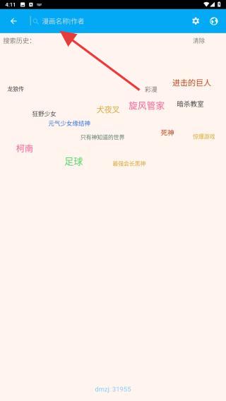3、在搜索框內(nèi)輸入內(nèi)容,結(jié)果出來后點(diǎn)擊目標(biāo)漫畫。