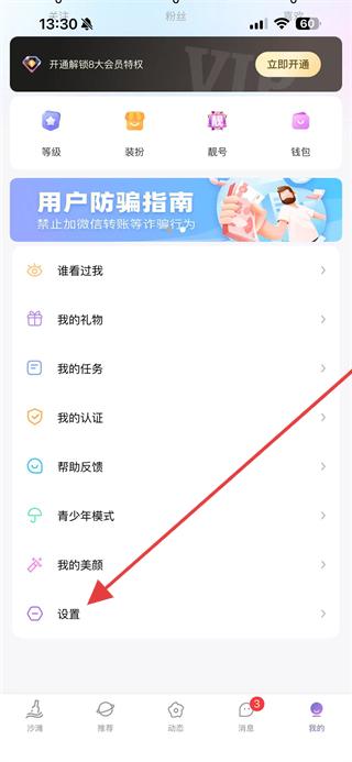 2、在我的頁面中,找到并點(diǎn)擊設(shè)置選項進(jìn)入設(shè)置相關(guān)頁面。