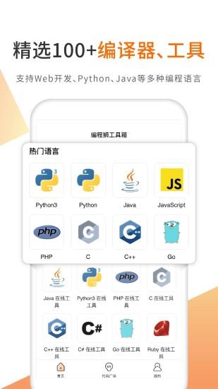 1、支持20+編程語言和編程工具,滿足你的所需;