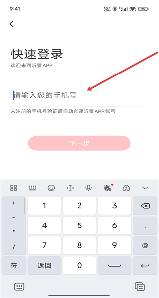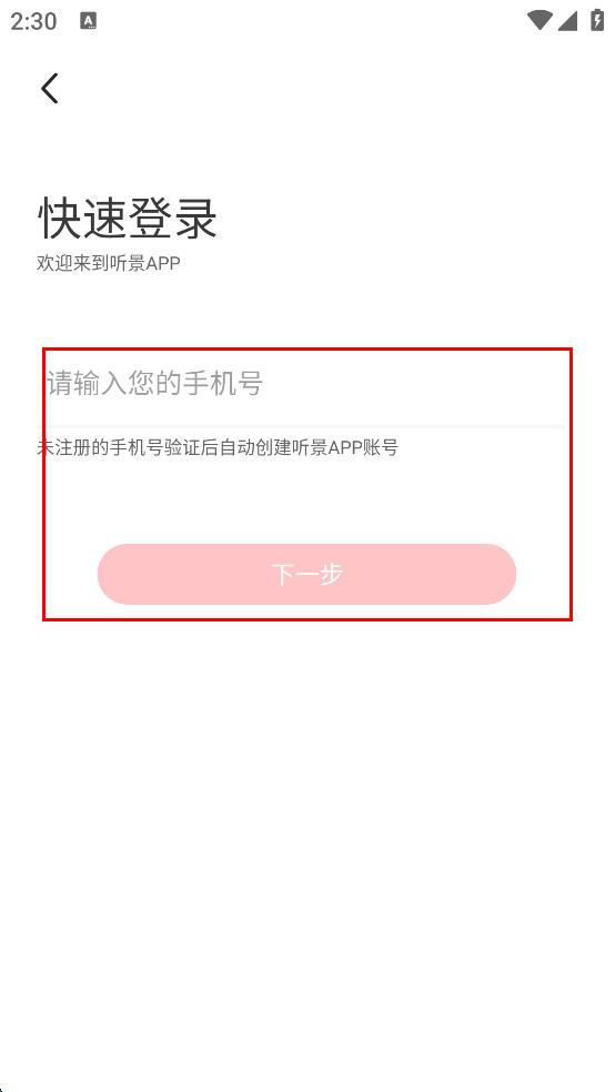 3、在快速登錄界面,輸入手機(jī)號(hào)碼,點(diǎn)擊“下一步”,按照提示完成后續(xù)驗(yàn)證步驟,未注冊(cè)的手機(jī)號(hào)驗(yàn)證后會(huì)自動(dòng)創(chuàng)建該APP賬號(hào),從而完成登錄。