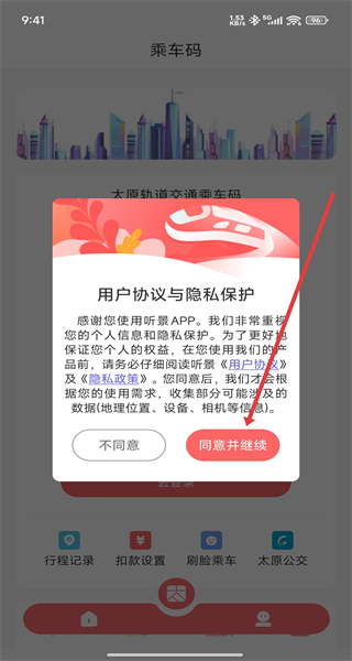 1、打開(kāi)聽(tīng)景APP,點(diǎn)擊同意并繼續(xù)按鈕,確認(rèn)用戶協(xié)議與隱私保護(hù),進(jìn)入登錄引導(dǎo)界面。