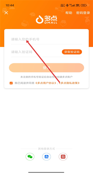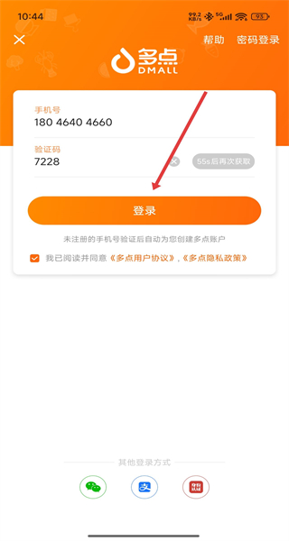 4、在點(diǎn)擊獲取驗(yàn)證碼并輸入后,點(diǎn)擊登錄按鈕,即可完成登錄。