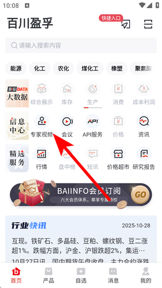 1、打開(kāi)首頁(yè)找到并點(diǎn)擊專(zhuān)家視頻功能入口,進(jìn)入專(zhuān)家視頻板塊頁(yè)面。