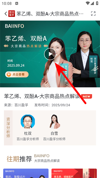 2、在頁(yè)面挑選感興趣的大宗商品熱點(diǎn)解讀視頻,進(jìn)入該視頻的詳情頁(yè)面。