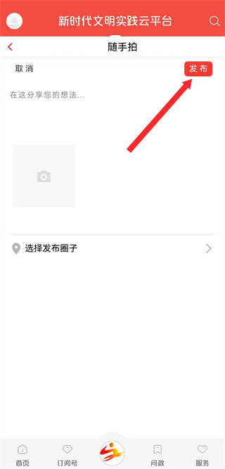 4、在隨手拍編輯頁面,可添加圖片等,完成后點(diǎn)擊發(fā)布即可。