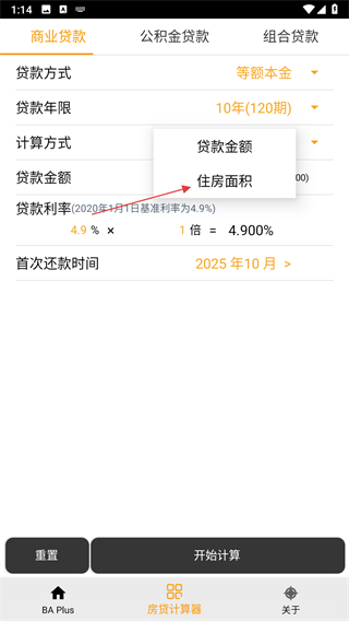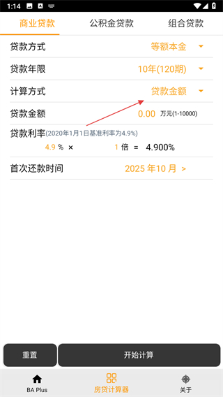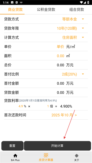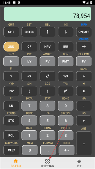 1、打開BA Plus計(jì)算器應(yīng)用,點(diǎn)擊房貸計(jì)算器按鈕。