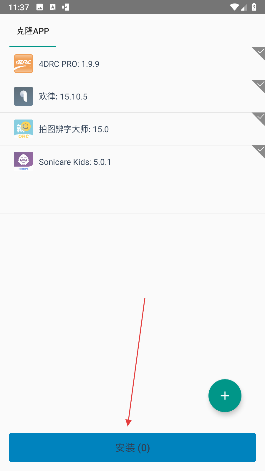 3、在克隆APP列表里,勾選需要添加的應用,然后點擊底部安裝按鈕。