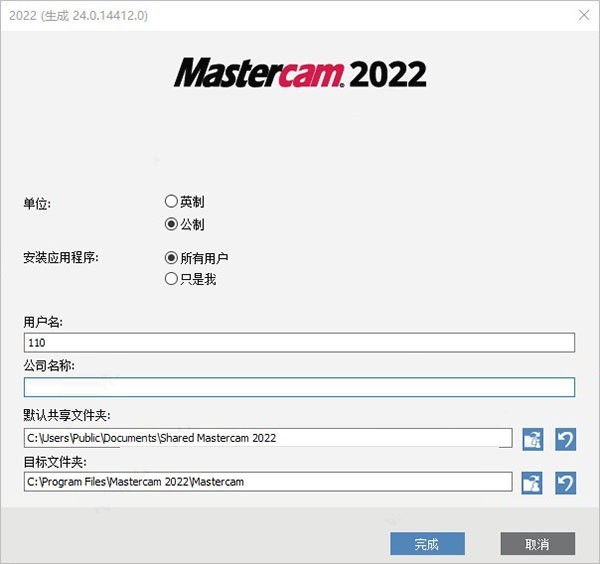 第一步:首先雙擊運^“mastercam2022-pb2-web.exe”程序,并默認簡體中文進行安裝;