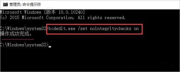 然后把bcdedit.exe /set nointegritychecks on復制到命令窗口,按回車執(zhí)行即可。