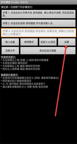 1、打開游戲鍵盤界面,點擊設置按鈕,進入游戲鍵盤的設置頁面。