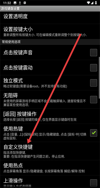 2、在設置頁面里,找到“自定義快捷鍵”選項并點擊,進入自定義快捷鍵的設置界面。
