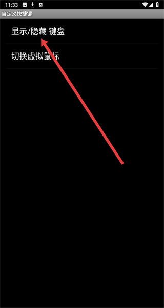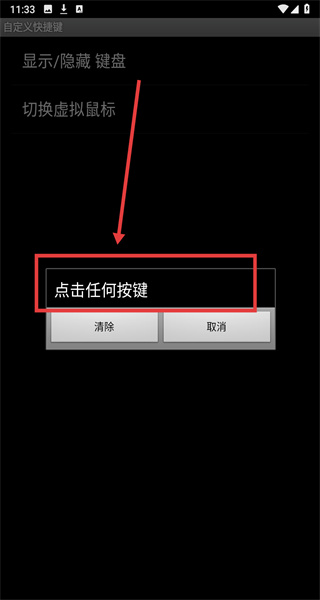 3、在自定義快捷鍵設置界面,選擇要設置的功能如顯示/隱藏鍵盤,此時會彈出“點擊任何按鍵”的提示框。