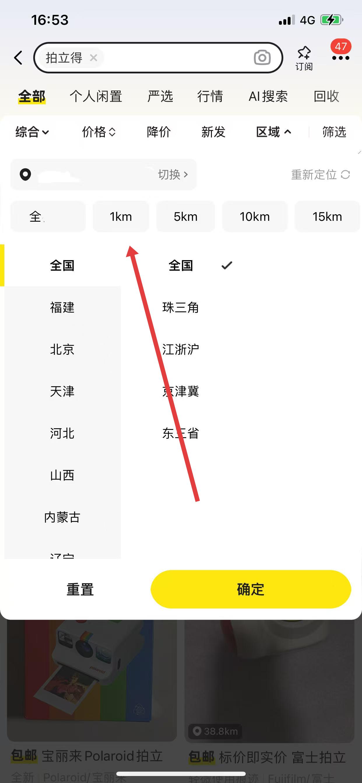 2、在搜索結(jié)果頁(yè)面,點(diǎn)擊上方的區(qū)域選項(xiàng),進(jìn)入?yún)^(qū)域篩選界面。