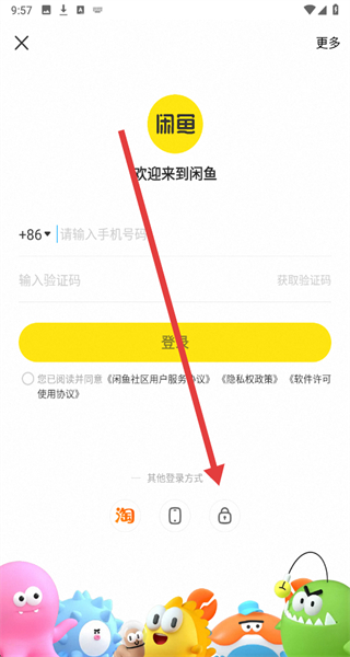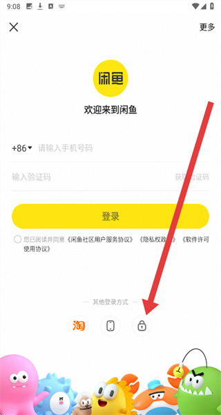 2、在進(jìn)入到登錄頁(yè)面后,可以點(diǎn)擊下方鎖圖標(biāo),進(jìn)行切換使用賬號(hào)密碼的方式登錄。