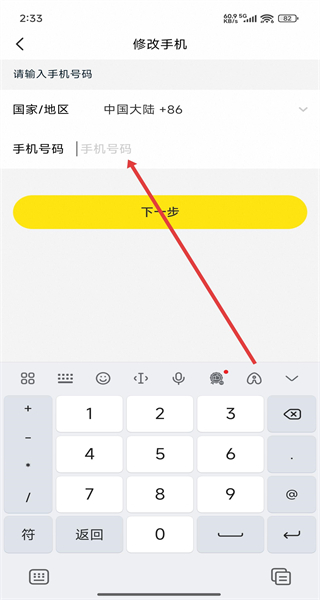 4、在修改手機(jī)頁(yè)面輸入新的手機(jī)號(hào)碼,點(diǎn)擊“下一步”,完成手機(jī)號(hào)碼修改操作。
