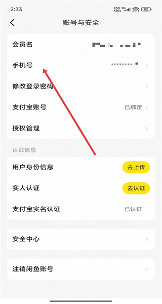 2、賬號(hào)與安全頁(yè)面點(diǎn)擊“手機(jī)號(hào)”,進(jìn)入身份驗(yàn)證頁(yè)面。