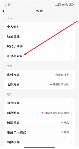 1、點(diǎn)擊“賬號(hào)與安全”,進(jìn)入賬號(hào)與安全頁(yè)面。