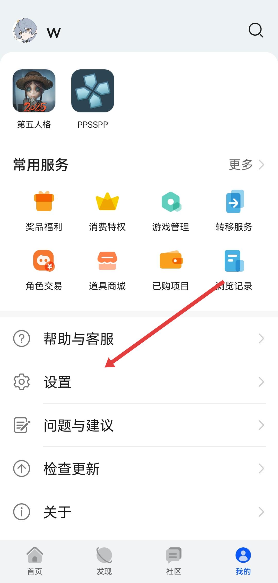1、打開華為游戲中心APP,進入我的頁面,找到設(shè)置的選項并點擊,進入設(shè)置界面。