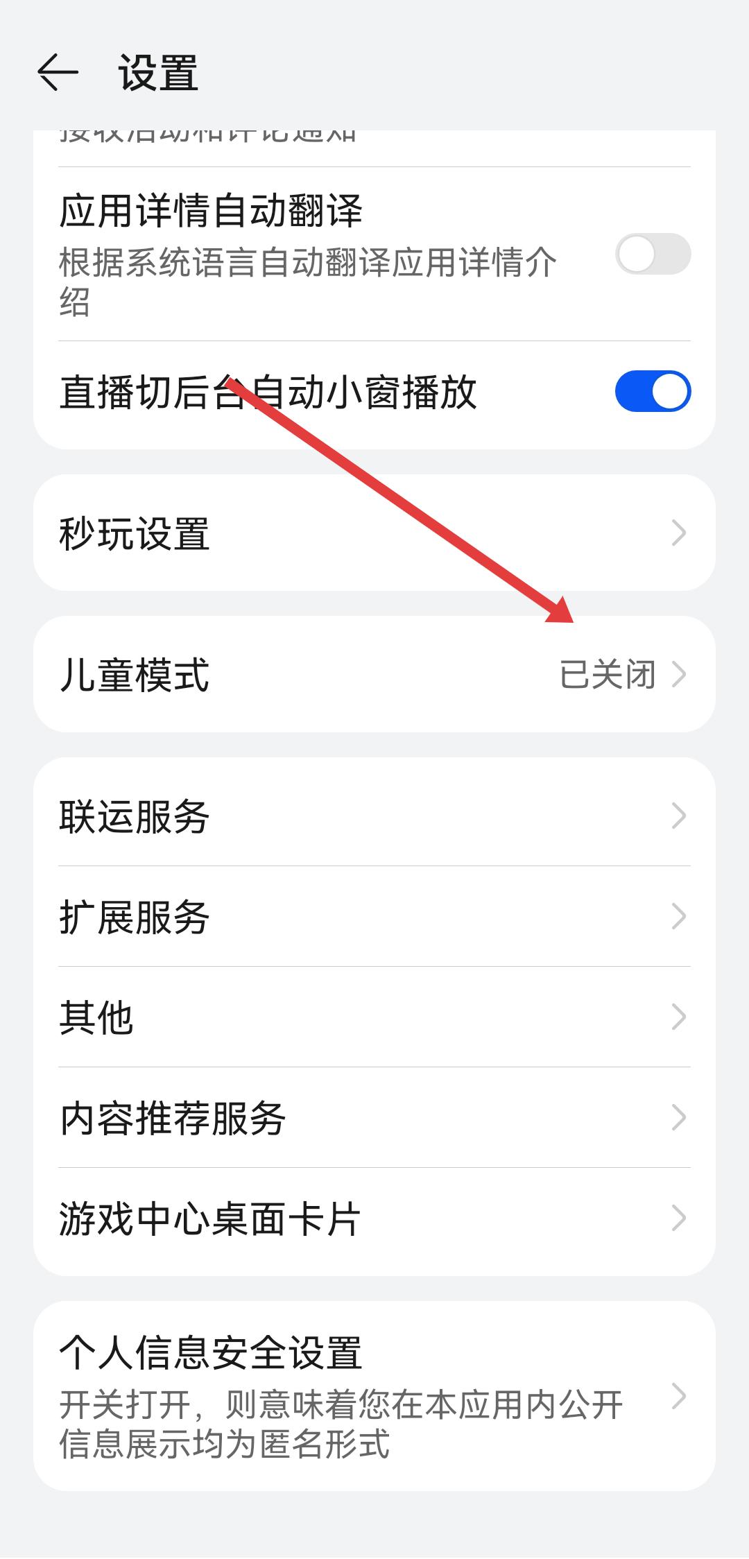 2、在設(shè)置的頁面中,找到兒童模式選項,點擊進入健康使用手機設(shè)置頁面。