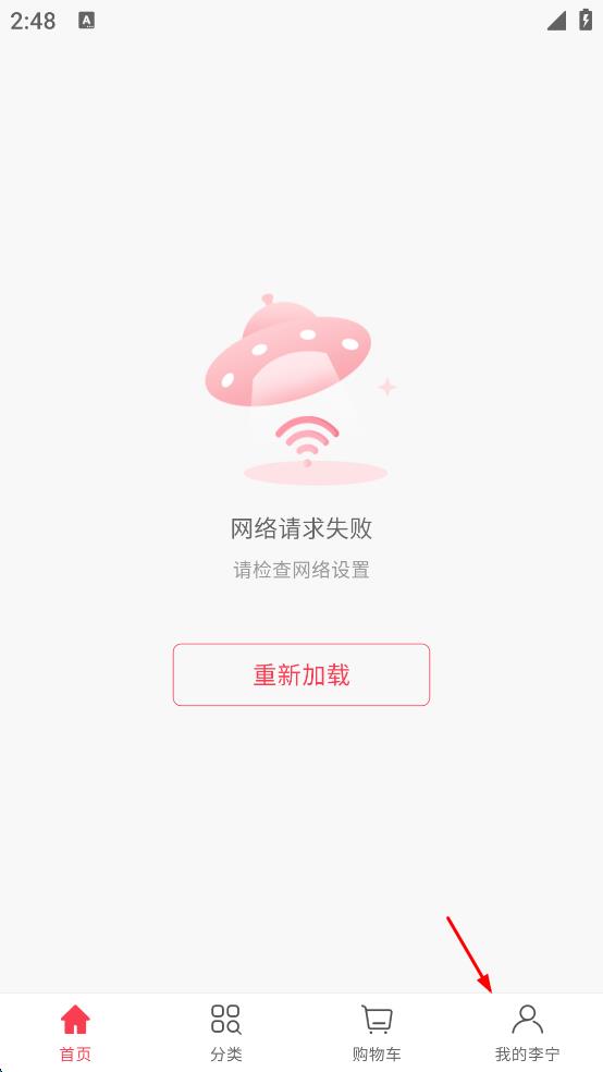2、進入APP界面,點擊頁面右下角我的李寧選項。