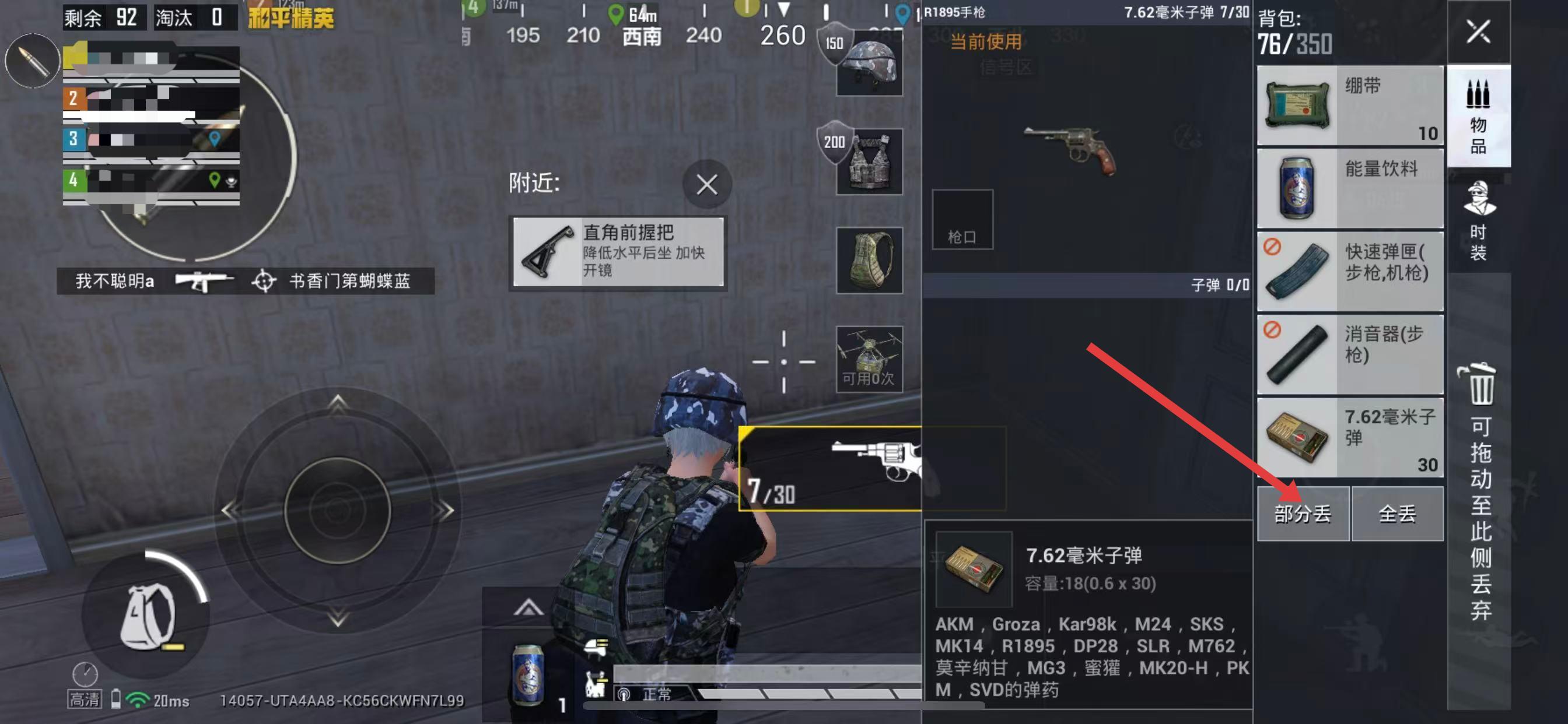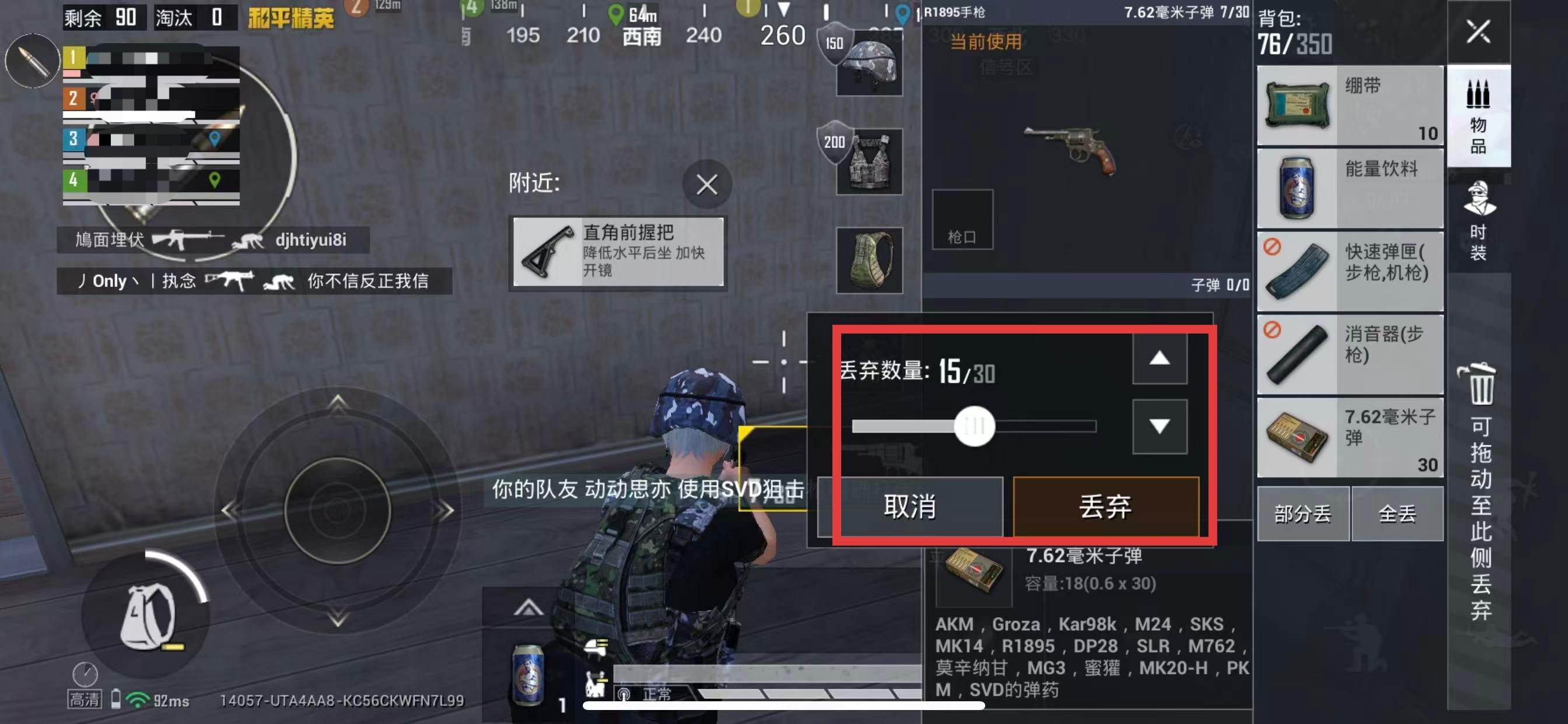 3、通過拖動進度條來調(diào)整想要丟棄的子彈數(shù)量,設置完成后點擊丟棄按鈕,即可丟棄指定數(shù)量的子彈。