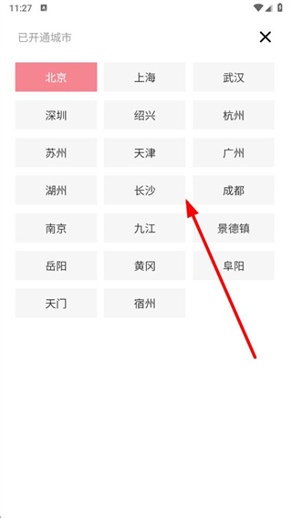 2、在當(dāng)前頁面,點擊左上角的城市區(qū)域,進入已開通城市的選擇界面。