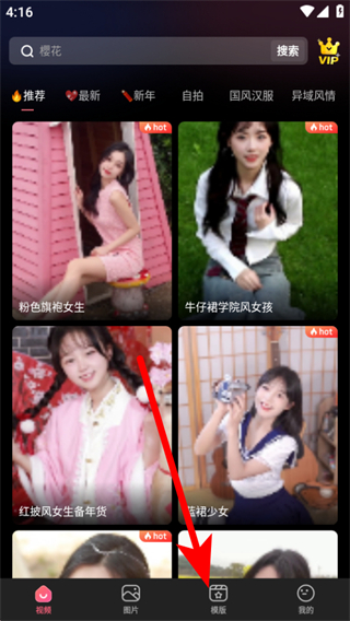1、打開可拍相機應用,點擊底部導航欄的模板選項。