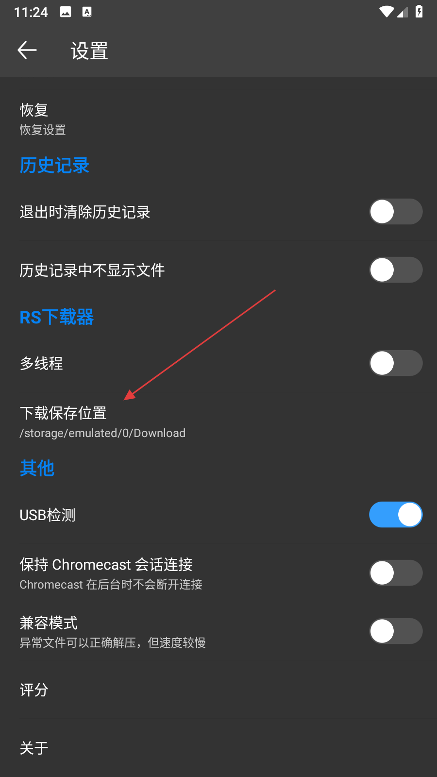 3、在設置界面中,點擊下載保存位置選項,彈出下載保存位置選擇對話框。