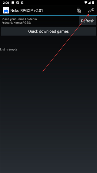 1、打開(kāi)Neko RPGXP模擬器,在主界面點(diǎn)擊右上角的扳手圖標(biāo)。