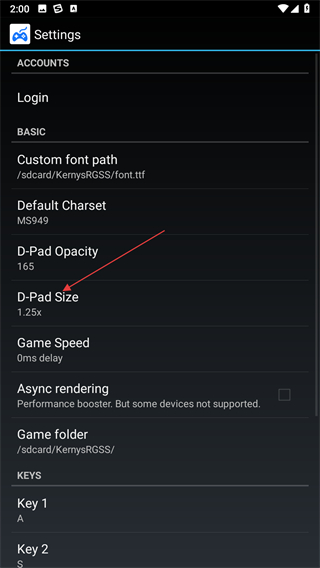 2、進(jìn)入設(shè)置界面后,找到D-Pad Size方向鍵大小選項(xiàng)并點(diǎn)擊。