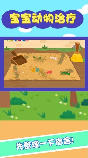 森林里有許多小動物,有些小動物生病了,快把他們送到醫(yī)院去治療吧!在這之前還需要打掃一下宿舍的衛(wèi)生,再稍微裝扮一下,打造一個干凈整潔的環(huán)境。接下來,幫助梅花鹿取下身上的荊棘;幫助大象補好壞掉的牙齒;給老虎清理毛發(fā);為受傷的猴子貼上藥膏。在這里,孩子們就像一個真正的醫(yī)生一樣去幫助那些生病需要治療和護理的動物們,游戲操作輕松簡單,在快樂游戲的過程中鍛煉孩子們的動手能力,同時培養(yǎng)孩子們的愛心。