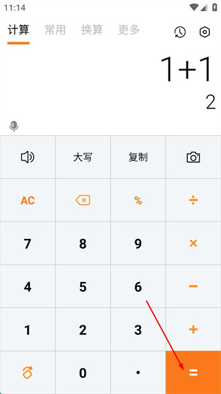 3、完成運(yùn)算式的輸入后,點(diǎn)擊頁面右下角的等于按鈕進(jìn)行計(jì)算。